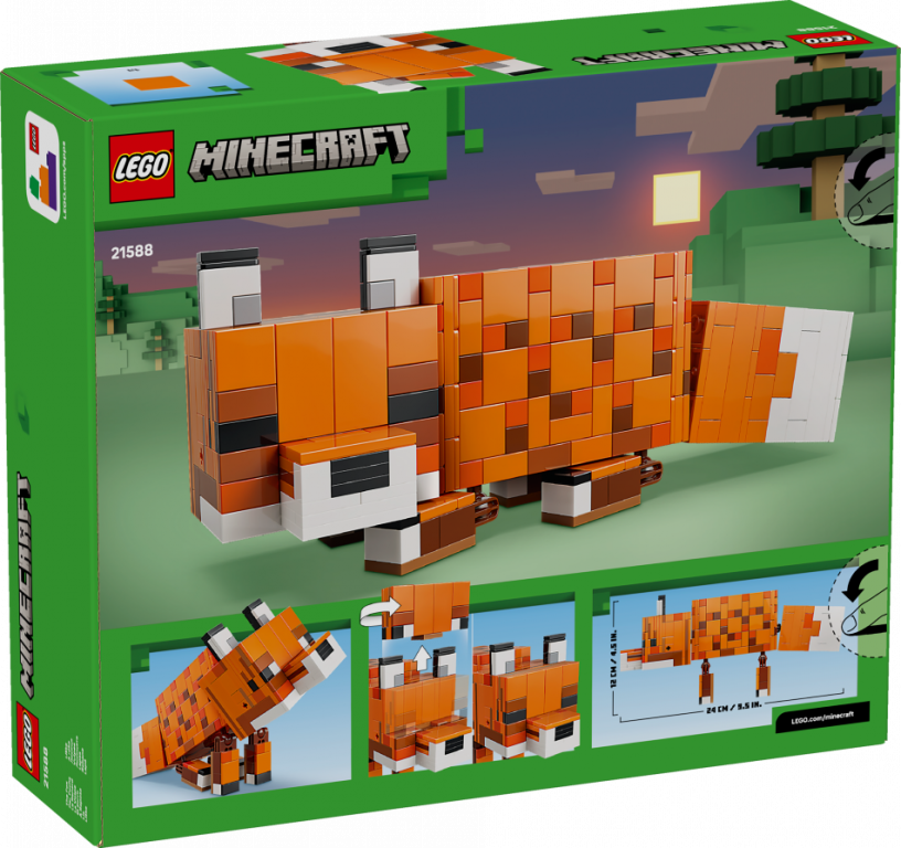 Iedzīvini Minecraft® ar šo autentisko Lapsu (21588) – LEGO® būvēšanas komplektu zēniem un meitenēm no 10 gadu vecuma. Ar šo dzīvnieka figūru no populārās spēles bērni var izlikt apskatei savu aizraušanos ar Minecraft, lai to redzētu visi. Ar šo būvēšanas komplektu bērniem var atveidot spēles tēlu lapsu iespaidīgā mērogā un līdz reālistiskām detaļām, tāpēc tā ir izcila dāvana Minecraft spēlētājiem un videospēļu dekoru faniem. Lapsai ir kustīgas kājas, grozāms kakls, kustināma galva un kustināmsacu nodalījums, kas ļauj atvērt un aizvērt tās acis. Kustīgo figūru var novietot tā, lai tā būtu nomodā un stāvus, sēdus un ar saliektu galvu, un aizmigusi guļus pozīcijā. Lietotnē LEGO Builder bērni var būvēt pārliecinoši – tuvināt un grozīt komplektus trīs dimensijās un sekot līdzi progresam ar viegli izpildāmām digitālām instrukcijām. Komplektā ir 497 detaļas.