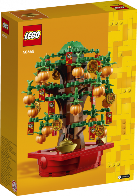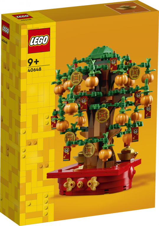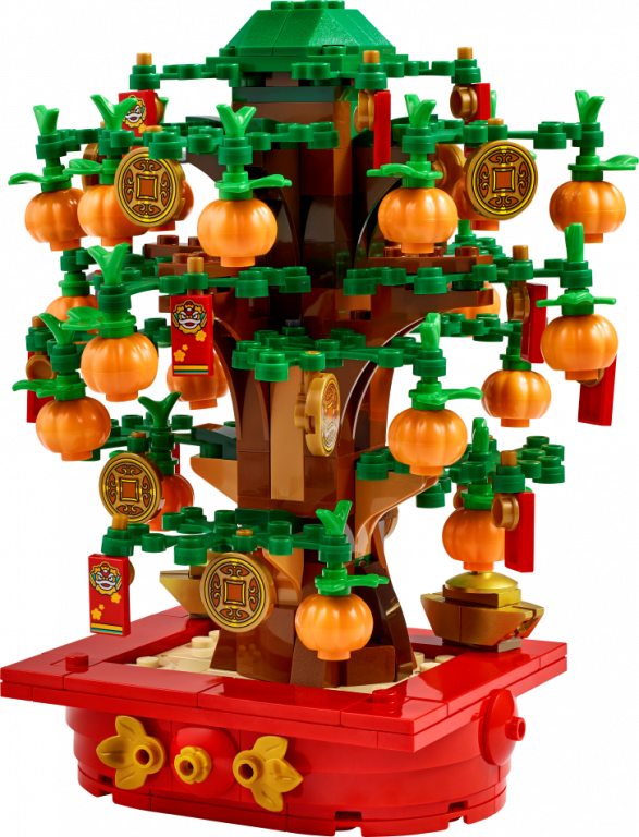 Svini ķīniešu Jauno gadu ar šo pārsteidzoši detalizēto un glīto naudas koku (40648), kas zināms kā bagātības un atlīdzības avots. Komplektā ietilpst koks, ko rotā 20 mandarīni, 14 sarkanas aploksnes un 10 monētas bērniem no 9 gadu vecuma. Ķīniešu kultūrā jau no seniem laikiem tiek uzskatīts, ka naudas koks nes pārpilnību, labklājību un veiksmi. Šis modelis ir izliekams apskatei un lieliski papildina ķīniešu Jaunā gada svinības.