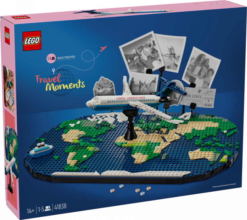 Ģimeni, tostarp bērnus no 14 gadu vecuma, gaida radoša būvēšana ar šo rotaļu būvēšanas komplektu "Ceļojumu mirkļi" (41838). Šis radošais LEGO® rotaļu komplekts ir jauka dāvana ceļotājiem un ģimenēm, kam patīk piedzīvojumi, un tajā ir iekļauta uzbūvējama pasaules karte, reaktīvā lidmašīna, 4 transportlīdzekļu mikromodeļi, 20 atrašanās vietas elementi, 10 fotoattēlu turētāji un 5 būvēšanas instrukciju bukleti. Ģimenes var dalīties savās iecienītākajās ceļojumu atmiņās vai sapņot par jauniem ceļojumiem, radot Brīnumlidmašīnu un karti. Tad var izveidot karti, lai parādītu apmeklētās valstis vai plānotos ceļojumus – un mainīt to pēc katra piedzīvojuma!