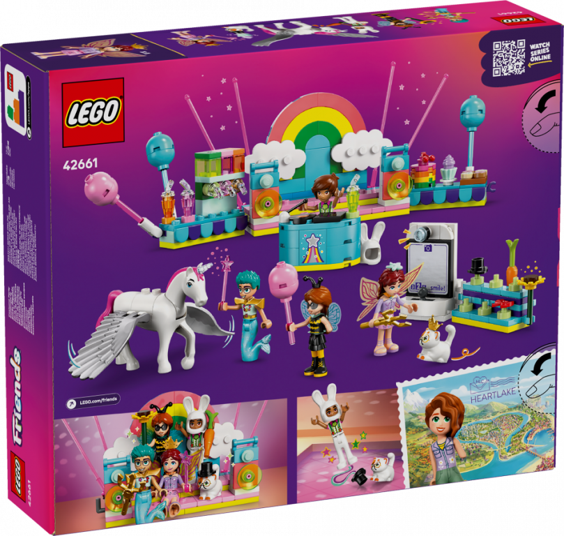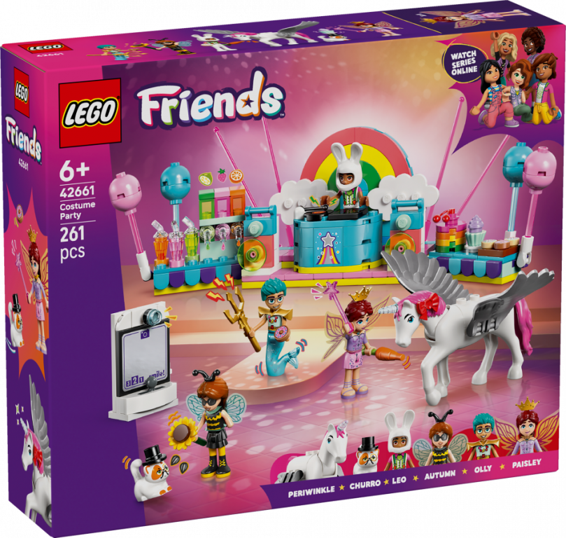 Šis ir būvēšanas komplekts bērniem, pilns ar iedvesmu stāstu veidošanai. LEGO® Friends komplekts "Masku balle ar Vienradzi un Feju" (42661) meitenēm un zēniem no 6 gadu vecuma ietver 4 LEGO Friends minilellītes, kaķa figūru un zirga figūru. Tā ietver arī daudzus piemīlīgus piederumus izlikšanās rotaļām par ballīšu tematiku.