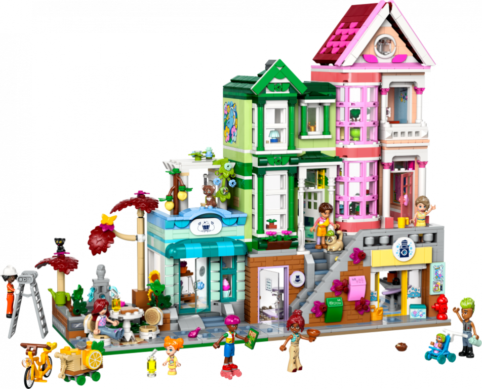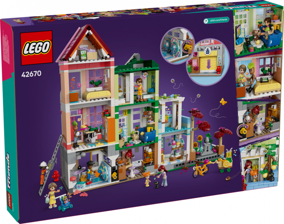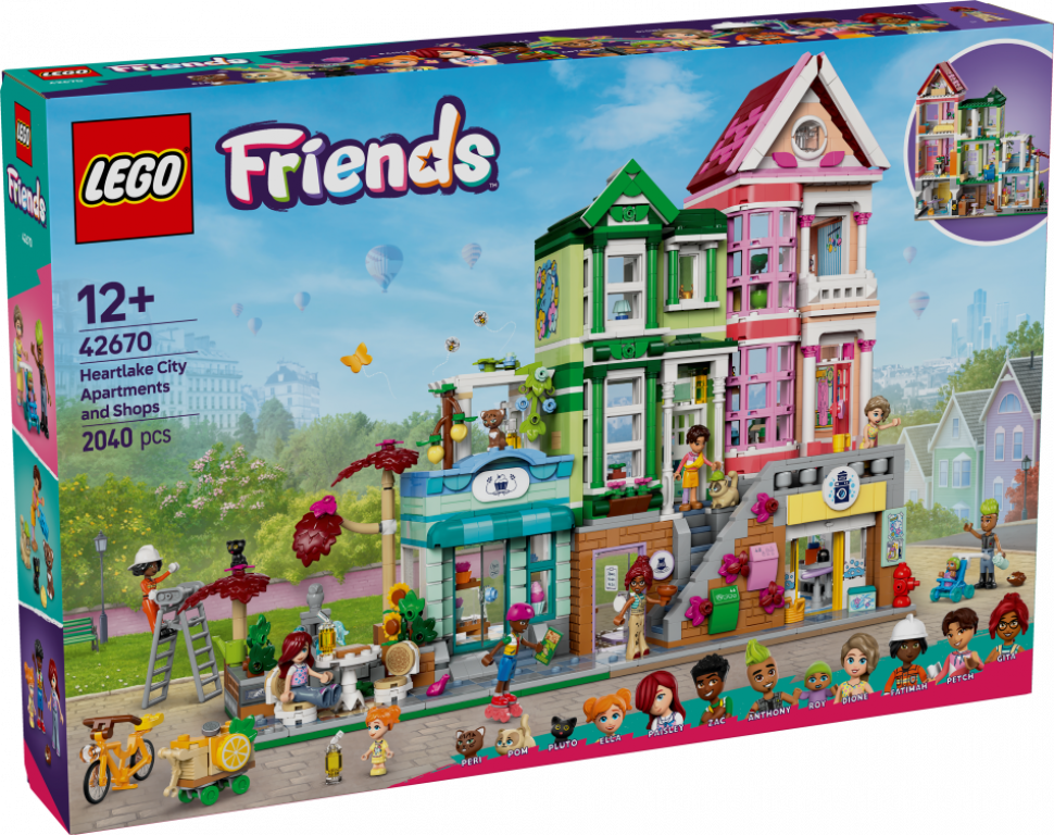 Atklāj modeļa komplektu ar kopienas garu ar LEGO® Friends būvējamo rotaļlietu "Hārtleikas pilsētas dzīvokļi un veikali" (42670). Šis komplekts ir lieliska dāvana bērniem no 12 gadu vecuma, un tas ietver 3 krāsainas LEGO mājas, ceptuvi, keramikas studiju, veļas mazgātavu un daudz ko citu. Te ir daudz aizraujošu detaļu un sižetu, ko atklāt, kā arī 9 personāži, tostarp 7 minilellītes un 3 kaķu figūras.
