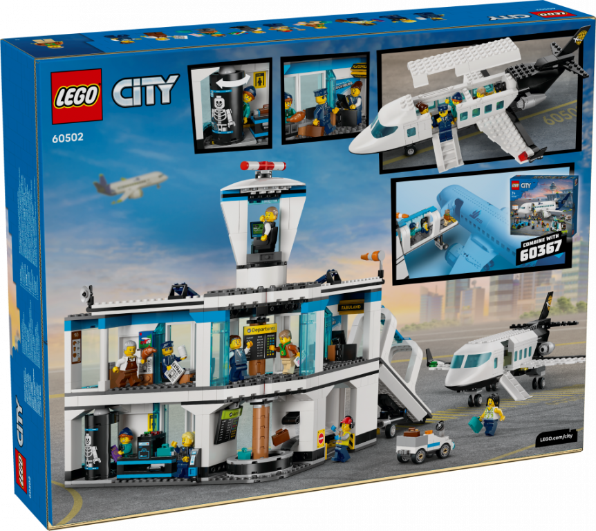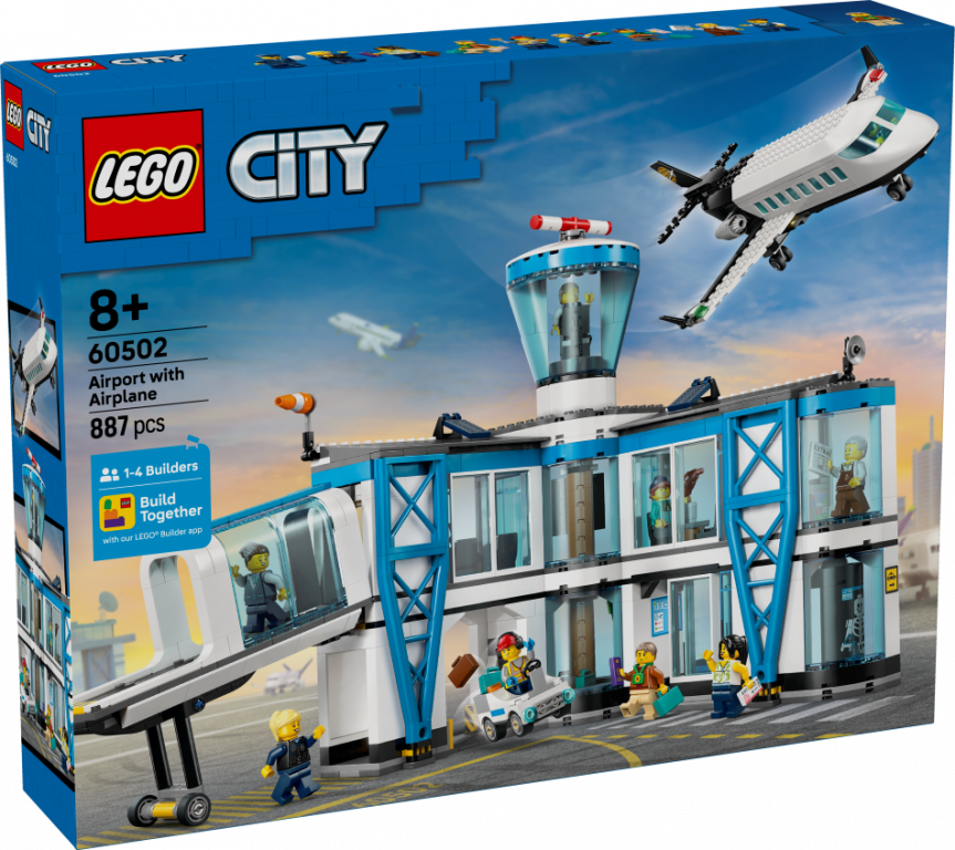 Rotaļu laiks sāksies ar būvēšanas komplektu LEGO® City Lidosta ar lidmašīnu (60502) bērniem no 8 gadu vecuma. Šim detalizētajam lidostas modelim ir daudz funkciju, lai izspēlētu dažādas situācijas. Bērni var skenēt bagāžu ar rotaļu skeneri, grozītcaurstaigājamo metāla detektoru, lai ieraudzītu rentgena staru skeletu, un mainīt detaļas izejošo lidojumu ekrānā ar četriem dažādiem galamērķiem. Komplektā ir arī aizraujoša rotaļu pasažieru lidmašīna, kam ir detalizēta kabīne un nolaižamas kāpnes, kā arī bagāžas vilcējs un pasažieru tiltiņš. Vien pievieno deviņas minifigūras un nododies tēlainām rotaļām stundām ilgi. Šis rotaļu lidostas komplekts ir lieliska ideja dāvanai zēniem un meitenēm, kam patīk lidmašīnu modelīši un LEGO būvēšanas komplekti. Apvieno to ar citiem komplektiem (katrs jāiegādājas atsevišķi) no LEGO City klāsta vēl plašākiem piedzīvojumiem. Apvieno spēkus ar draugiem un ģimeni lietotnes LEGO Builder režīmā "Build Together" – tajā katrs var būvēt daļu komplekta, izmantojot savu ierīci. Komplektā ir 887 detaļas.