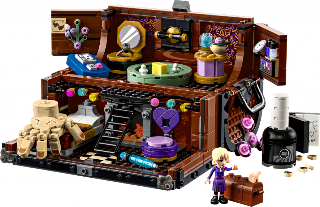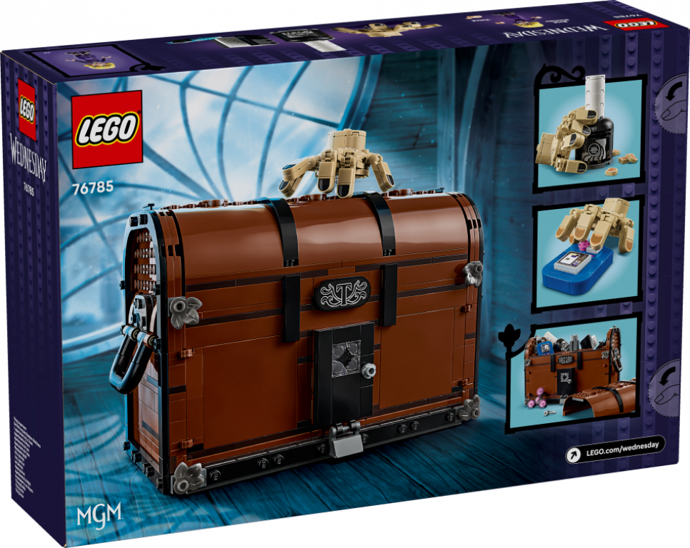 Nebeidzamas, pārnēsājamas rotaļas mājās sagaida seriāla Wednesday fanus no 10 gadu vecuma šajā LEGO® Wednesday detalizētajā, būvējamajā rotaļlietu komplektā "Thing dzīvoklis" (76785). Šis radošais rotaļu un apskates modelis ir aizraujoša dāvana dzimšanas dienā bērniem un ietver atveramu lādi, kurā ir gulta, krēsls, hūte un pulkstenis, vieta lādes augšpusē, kur turēt uzlīmes, laku un krēmu, un citas lietas. Kā arī kustīga Thing figūra un Enidas minilellītes figūra.