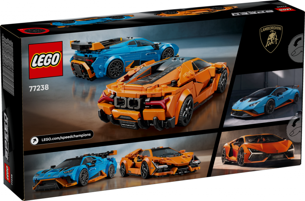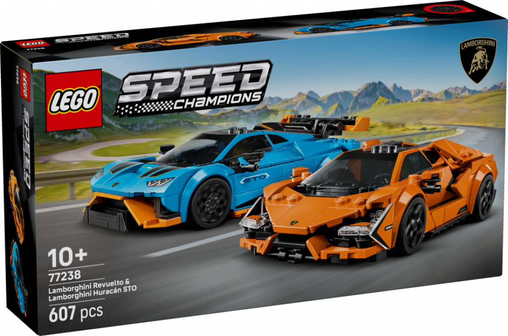 Bērni var iepazīt Lamborghini savdabīgo stilu, uzbūvi un dizainu šajā dubultajā komplektā – LEGO® Speed Champions Lamborghini Revuelto un Huracán STO (77238). Šajā modeļa komplektā ir 2 LEGO sacīkšu auto, ko uzbūvēt, izlikt apskatei un ar ko izspēlēt stāstus, un tā ir lieliska dāvana zēniem un meitenēm no 10 gadu vecuma, un pieaugušajiem kolekcionāriem.
