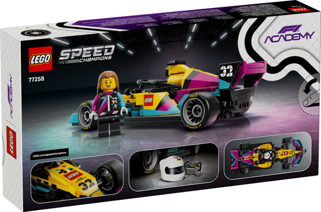 2026. gadā LEGO® Group pirmo reizi pievienojas F1 ACADEMY™ tīklam ar savu F1 ACADEMY auto, un meitenes un zēni no 10 gadu vecuma var uzbūvēt paši savu apskates modeli. Šis LEGO® Speed Champions F1 ACADEMY™ LEGO® sacīkšu auto (77258) ir ideāls rotaļām un apskatei, un tam ir daudz tādu pašu iezīmju, kā F1 ACADEMY – sieviešu sacīkšu sezonā – lietotajam modelim.