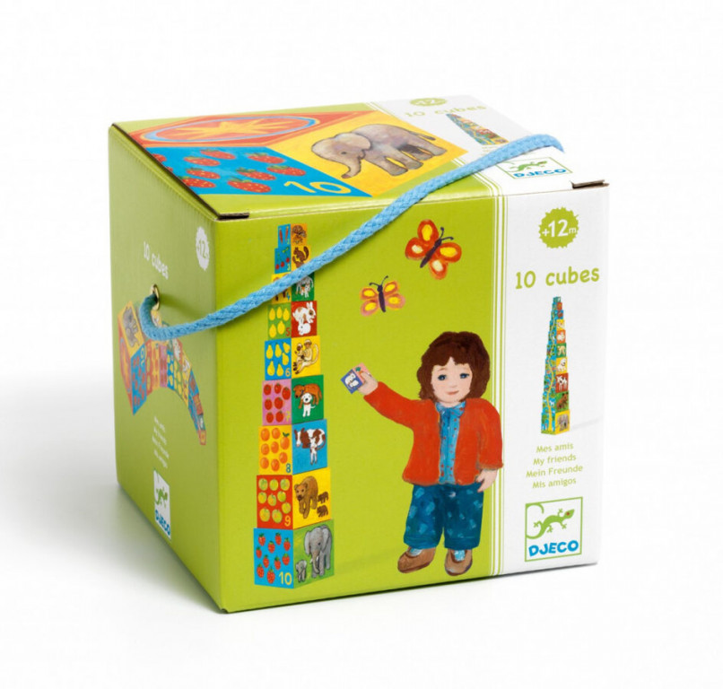10 skaisti kubi joku tematikā, kur uz katras kuba sāna malas attēloti dažādi dzīvnieki, krāsaini skaitļi un motīvi - daudzpusīga rotaļlieta, kas palīdzēs bērnam apgūt skaitļus un dzīvniekus, kā arī attīstīs acu-roku koordināciju, loģisko domāšanu un radošumu.