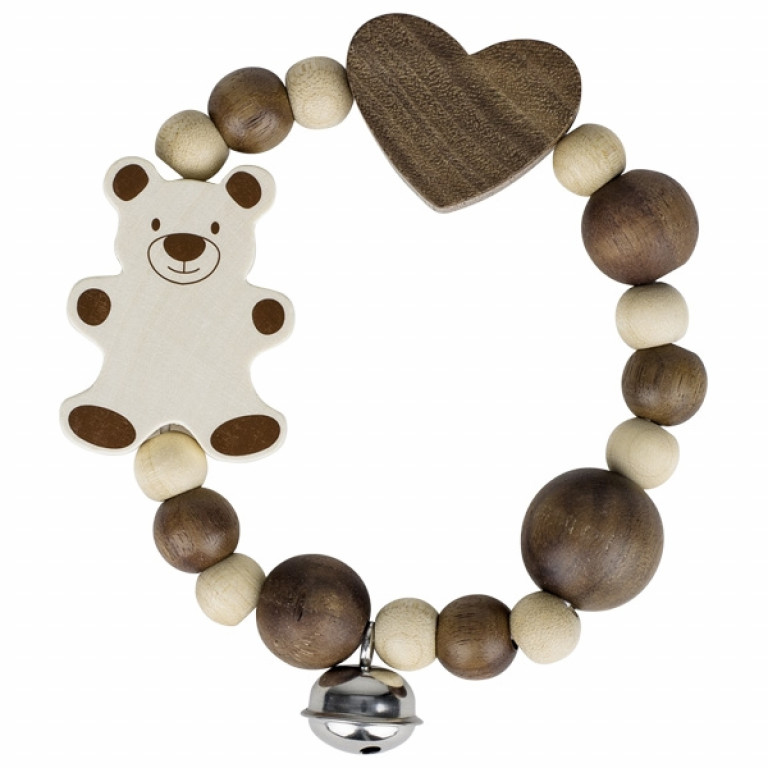 GOKI Elastīgs koka grabulītis - riņķītis ar lācīti dabiskās koka krāsās ar zvaniņu, 764170