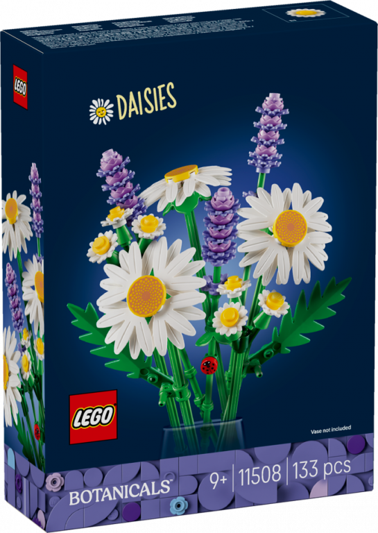 Ļauj mazajām iztēlēm uzplaukt ar komplektu LEGO® Botanicals Margrietiņas (11508) bērniem no 9 gadu vecuma. Meitenes un zēni gūs daudz prieka, atveidojot skaisto pušķi, kurā ir iekļautas trīs lielas margrietiņas, divi mazāku margrietiņu kātiņi un trīs nomierinoši lavandas zariņi, kā arī koši zaļi kāti. Šis nelielais LEGO pušķītis piedāvā izcilu prieka un miera balansu, un tajā ir reālistiski ziedi, kā arī mīlīga mārīte uz viena no lavandas zariņiem – jauka detaļa, kas noteikti iepriecinās mazosbūvētājus. Kad LEGO ziedu pušķis ir pabeigts, bērni var to lepni izlikt apskatei kā estētisku dekoru guļamistabā vai uz rakstāmgalda, kas nekad nenovītīs un nebūs jālaista. Šis LEGO ziedu pušķis ir pārdomāta dāvana meitenēm, zēniem un pusaudžiem dzimšanas dienās un citos īpašos notikumos, kā arī aizraujoša dāvana sālsmaizei dabas mīļotājiem, un par to var priecāties ikviena vecuma fani. Komplektā ir 133 detaļas.