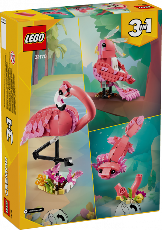 Порадуйте любящих животных девочек и мальчиков в возрасте от 8 лет этим фантастическим игрушечным набором LEGO Creator 3 в 1 «Дикие животные: Розовый фламинго» (31170). Игрушка розового фламинго имеет подвижную голову и располагается на небольшой подставке, покрытой растениями, чтобы дети могли часами наслаждаться творческой игрой или показывать ее как предмет декора комнаты.