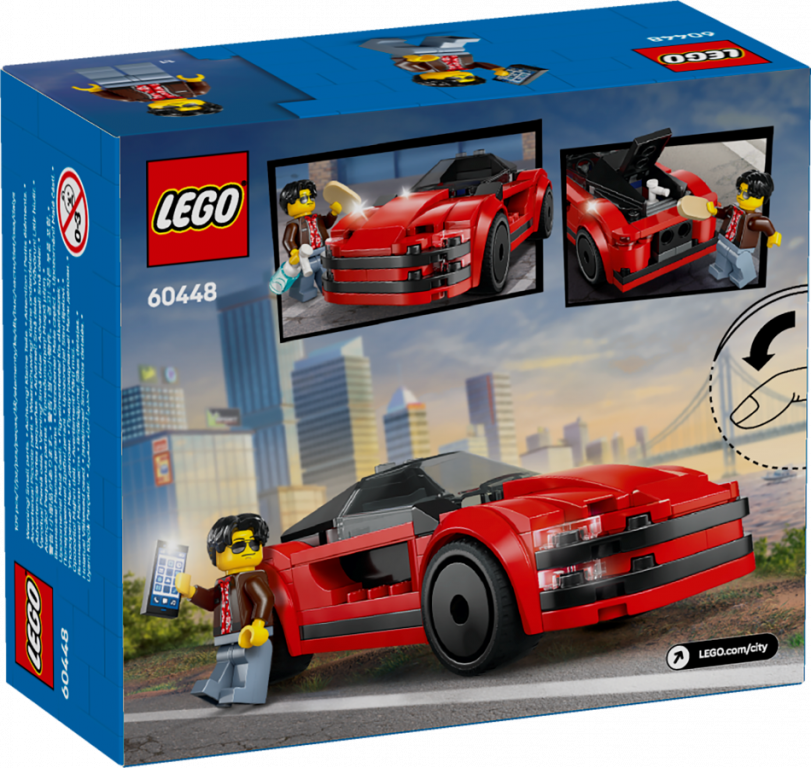 Iepriecini mazo auto entuziastu ar LEGO® City Sarkanā sporta auto komplektu bērniem no 5 gadu vecuma (60448). Šim gaumīgajam rotaļu sporta auto ir skaisti diski, zema profila riepas un tonēta kabīne. Bērni var nolikt pilota minifigūru aiz stūres un ielikt iekļauto rotaļu telefonu un tīrīšanas piederumus bagāžniekā, un tad doties uz šoseju ātrgaitas piedzīvojumos!