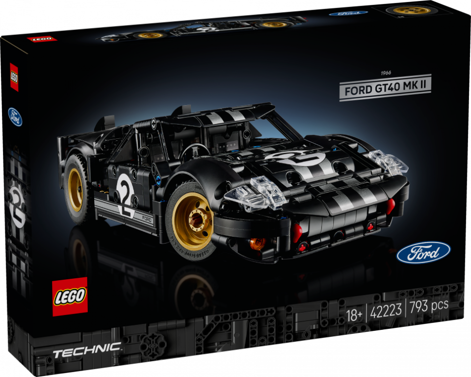 Dodies pretī uzvarai un cildini motosporta ikonu ar šo LEGO® Technic 1966 Ford GT40 MKII sacīkšu auto modelīti pieaugušajiem (42223). Auto mīļotāji, sacīkšu fani un būvēšanas entuziasti no 18 gadu vecuma var rosināt prestižo sacensību garu ar šo reālistisko leģendārā, senlaicīgā auto modelīti. Izklaidējies, izpētot komplekta detalizētās iezīmes. Lai stūrētu, grozi pogu auto augšpusē. Apskati atveramās durvis un apbrīno melni sudrabotās dizaina detaļas, kas izstrādātas, iedvesmojoties no īstā auto. Atver dzinēja pārsegu un ieraugi V8 dzinēju, un pēc tam atver pārsegu, izmantojot iekšpusē esošo sviru. Kad esi uzbūvējis, izliec savu sacīkšu auto apskatei jebkurā istabā vai biroja telpā. Vadi savu vēlmi pēc augstas veiktspējas transportlīdzekļu būvēšanas komplektiem ar LEGO Technic kolekcionējamo auto klāstu pieaugušajiem. Izbaudi uzlabotu būvēšanu ar lietotni LEGO Builder — tuvini un grozi ar 3D instrukcijām, vienlaikus saglabājot progresu un sekojot tam līdzi lietotnē. Komplektā ir 793 detaļas.