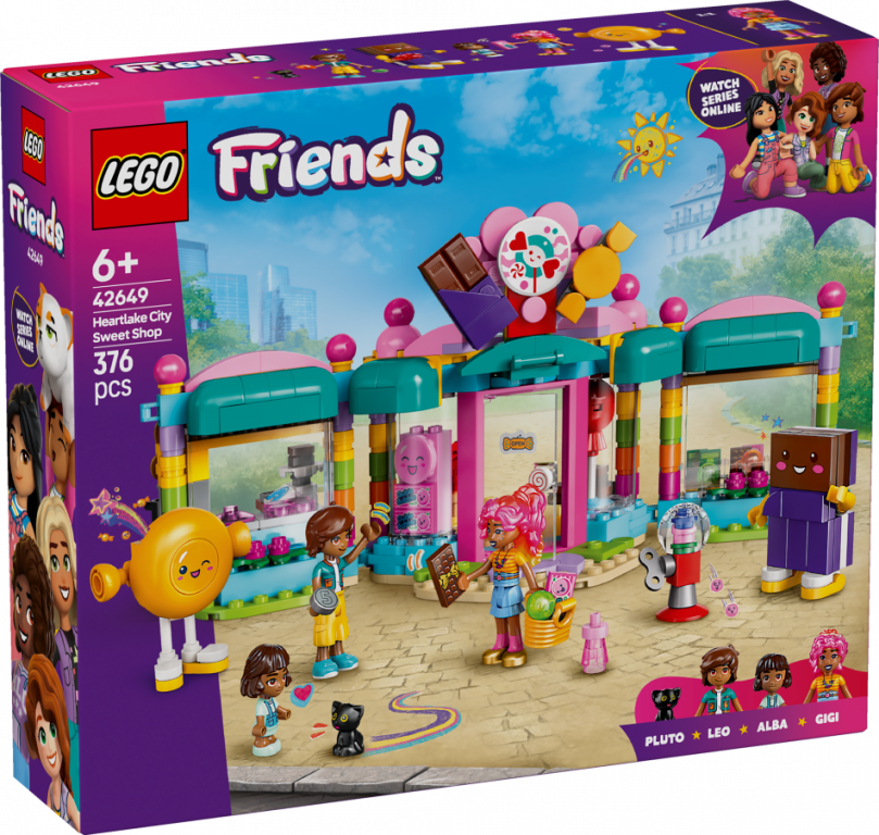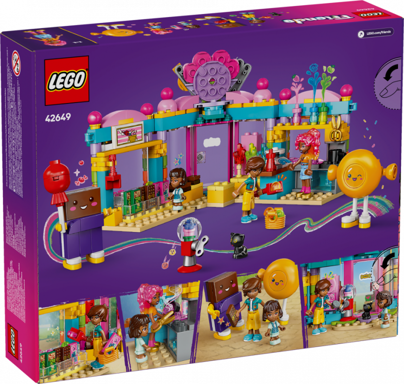 Šī ir mīļa dzimšanas dienas dāvana bērniem no 6 gadu vecuma, kam patīk izlikšanās rotaļlietu komplekti un rotaļu veikali. Meitenes, zēni un mazie būvētāji var izpētīt LEGO® Friends komplektu "Hārtleikas pilsētas saldumu veikals" (42649), kurā ir daudz našķu un aizraujošu detaļu. Komplektā ir 2 minilellītes, mikrolellīte, kaķa figūra un daudz piederumu radošām rotaļām.