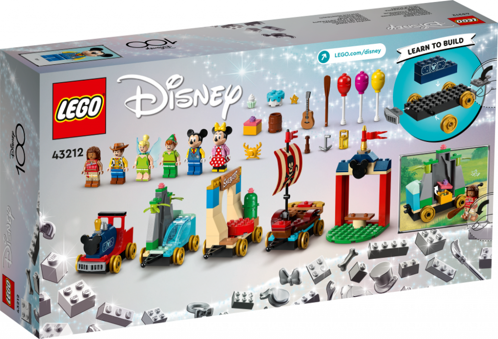 Apbur mazos vilcienu fanus no 4 gadu vecuma ar būvējamu rotaļlietu, par ko runās visi. LEGO® ǀ Disney komplekts "Disney svinību vilciens" (43212) ietver staciju, vilcienu, 3 parādes vagonus un 6 LEGO minifigūras: Mikipeli, peli Minniju, Vaianu, Pīteru Penu, Zvārgulīti un Vudiju. Izbaudi intuitīvu būvēšanas piedzīvojumu kopā ar bērniem, ko papildina lietotne LEGO Builder. Tā piedāvā tuvināšanas un grozīšanas rīkus, lai mazie būvēšanas laikā varētu vizualizēt modeli.