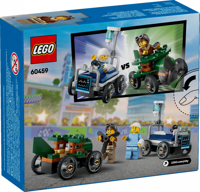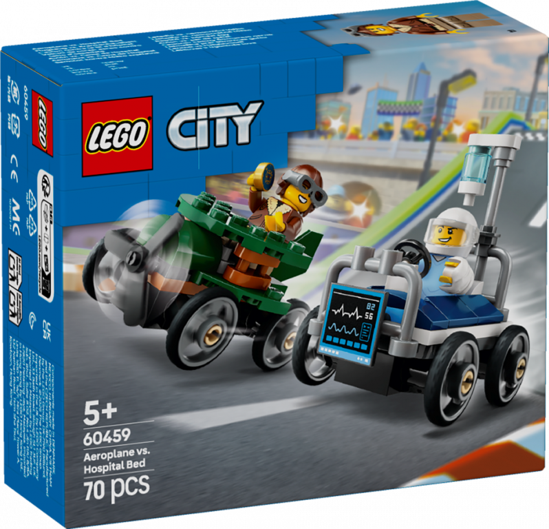 Palutini savu mazo sacīkšu fanu ar LEGO® City Lidmašīna pret Slimnīcas gultu: sacīkšu auto komplektu (60459) bērniem no 5 gadu vecuma. Šī aizraujošā sacīkšu auto rotaļlieta ietver 2 ”ziepju kastes” un 2 minifigūras. Bērni var ielikt pilotu lidmašīnā, lai tas sacenstos ar pacientu pārsteidzoši ātrajā slimnīcas gultā. Kurš uzvarēs? Ieņem vietu spraigajās pilsētas sacīkstēs!
