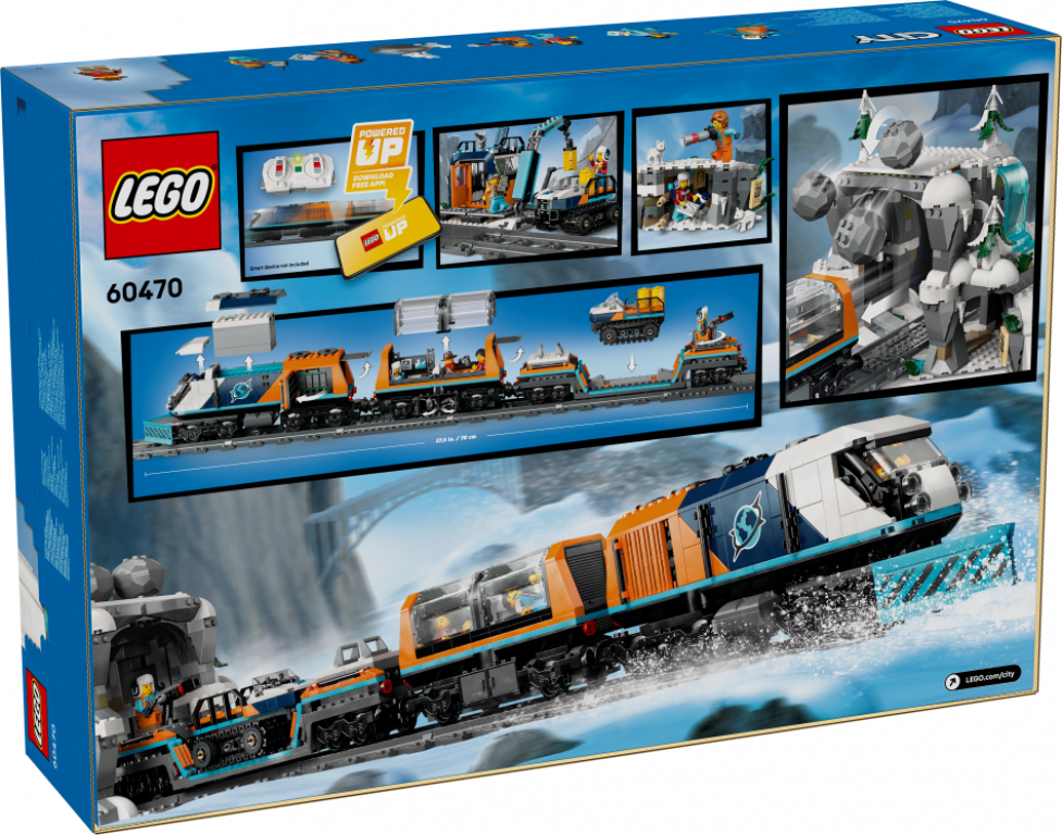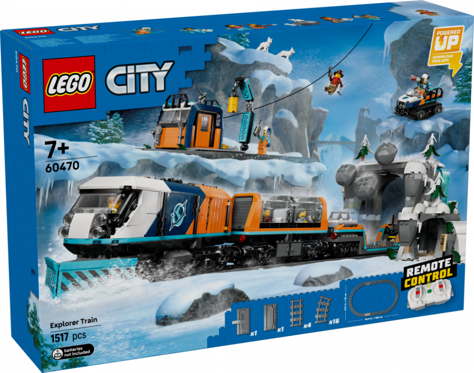Iepriecini STEM rotaļlietu un izlikšanās spēļu fanu ar LEGO® City Arktikas pētnieku polāro ekspresi (60470). Šajā augstākās klases rotaļlietu komplektā bērniem no 7 gadu vecuma ir attālināti vadāma LEGO lokomotīve ar sniega arklu, panorāmas tipa pasažieru vilcienu, plakano vilcienu un sniega traktoru. Bērni saņem 30 vilciena sliežu fragmentus, rotaļu kalnu tuneli ar krītošu akmeņu funkciju, priekšposteņa modeli un raktuvju alas. Vien pievieno Johnny Thunder un 5 pētnieku minifigūras, kā arī 2 polārlapsu figūras, un ļauj sākties piedzīvojumiem.