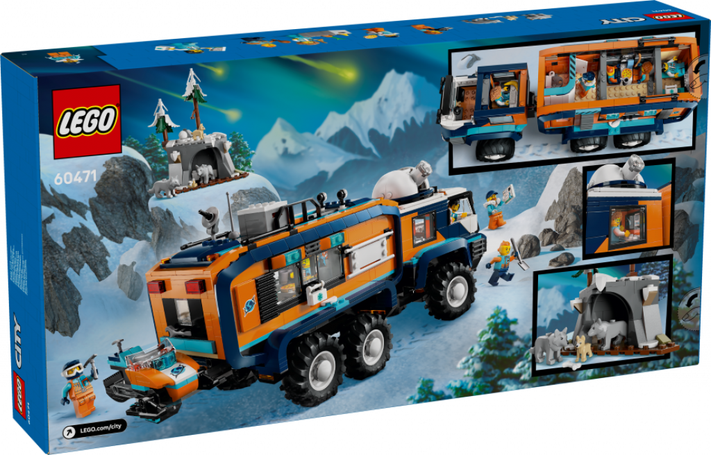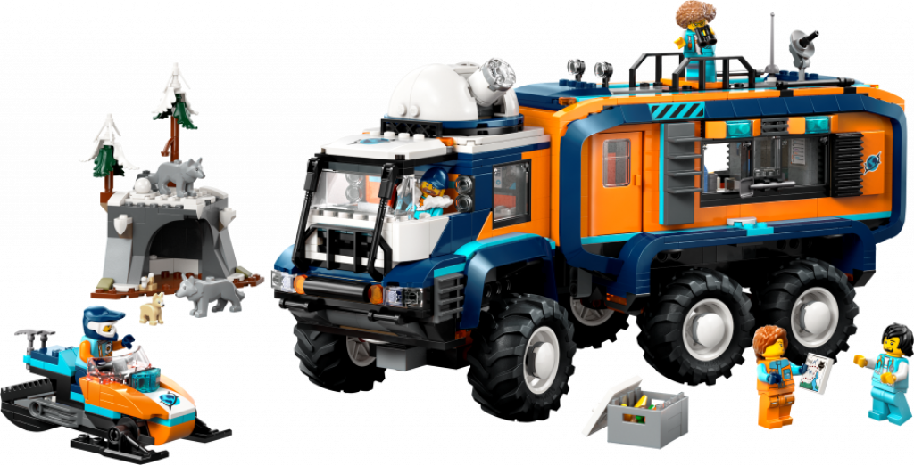 Iepriecini topošo piedzīvojumu meklētāju ar LEGO® City Arktikas pētnieku kravas auto ar zinātnisko laboratoriju (60471) STEM rotaļlietu faniem no 8 gadu vecuma. Šis reālistiskais rotaļlietu komplekts ietver kustīgu rotaļu kravas auto ar 6 riteņu balstiekārtu, riepām ar dziļiem protektoriem un grozāmu jumta observatoriju, kā arī aizraujošas interjera detaļas, piemēram, vadītāja kabīni, laboratoriju un omulīgu dzīvojamo telpu ar vannasistabu, virtuvi un guļamistabu. Bērni arī tiek pie rotaļu sniega auto un Arktikas alas ainas, kā arī 5 pētnieku minifigūrām un 3 Arktikas vilku dzīvnieku figūrām, tostarp kucēna, radošām rotaļām.