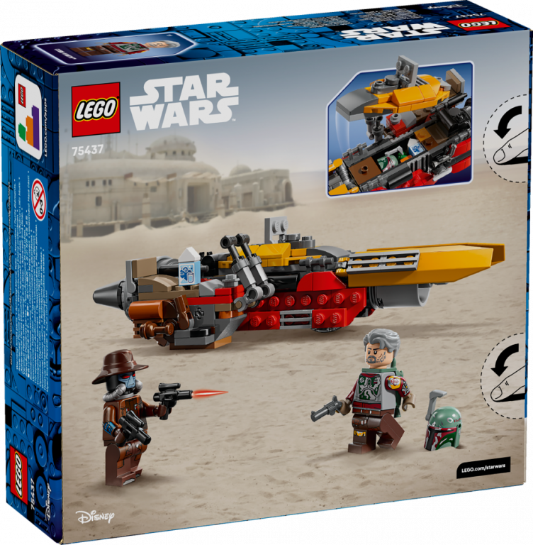 Apvieno spēkus ar Cobb Vanth spraigām cīņām pret Cad Bane šajā aizraujošajā LEGO® Star Wars™ transportlīdzekļu būvēšanas komplektā bērniem (75437). Uzbūvē detalizētu Cobb Vanth LEGO klucīšu modeli – aizraujošo ātrgaitas transportlīdzekli no Star Wars: The Mandalorian™ 2. sezonas. Tam ir vadītāja sēdeklis Cobb Vanth LEGO minifigūrai, piespraude viņa pistolei un slēpts nodalījums leģendāru piederumu novietošanai, tostarp Boba Fett ķiverei un zilā piena pakai. Iekļautā Cad Bane LEGO minifigūra ir aprīkota ar 2 blasterpistolēm un Cobb ir arī reaktīvais pacēlājs piedzīvojumiem gaisā. Jauka Star Wars™ dāvana zēniem, meitenēm un jebkuram Star Wars: Mandalorian vai Star Wars: Boba Fett™ fanam no 7 gadu vecuma – šī būvējamā rotaļlieta ir lielisksveids, kā rosināt bērnu iztēles ar rotaļām. Bērni var izbaudīt intuitīvu būvēšanu ar lietotni LEGO Builder — tuvināt un grozīt ar 3D instrukcijām, vienlaikus saglabājot progresu un sekojot tam līdzi lietotnē. Komplektā ir 207 detaļas.