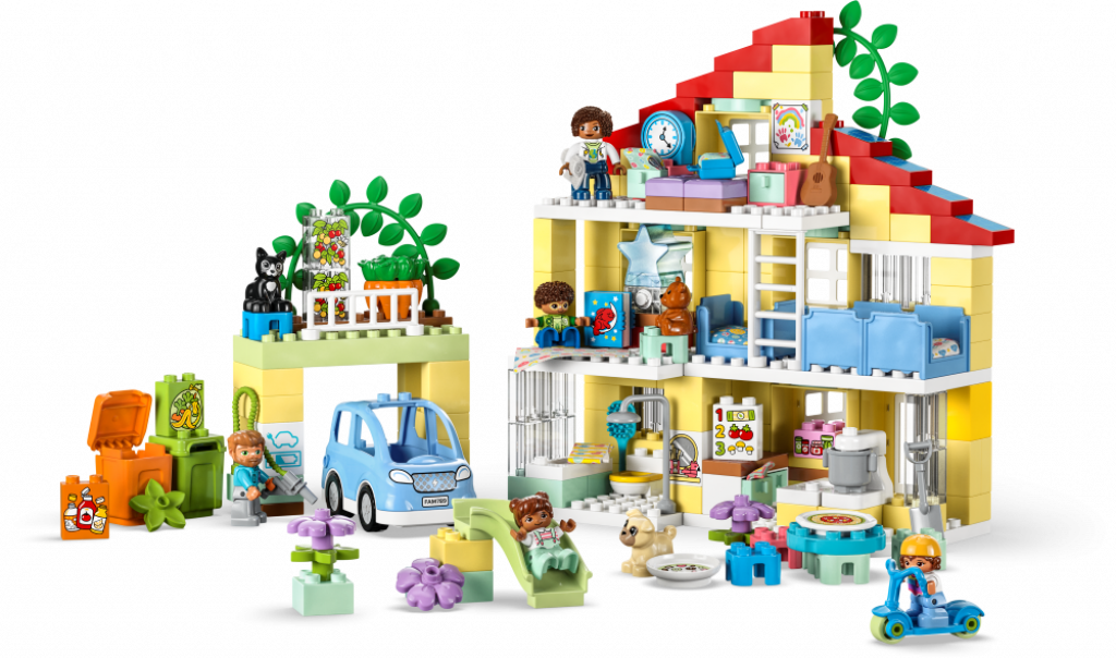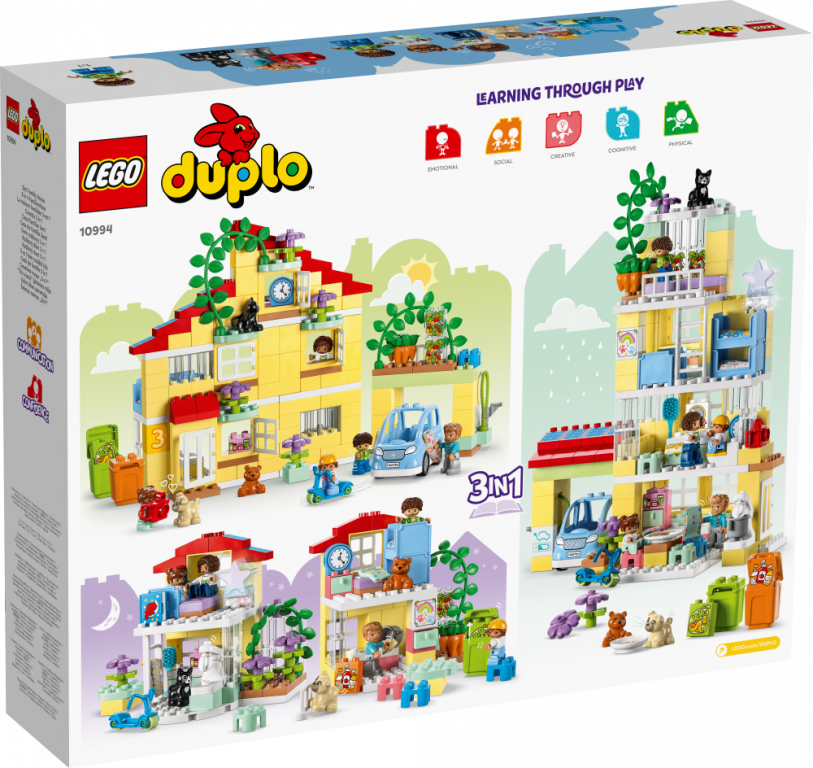 Добро пожаловать в набор «Семейный дом 3 в 1» LEGO DUPLO Town (10994), где детей ждет мир обучения. В этом домике, наполненном аутентичными деталями, малыши в возрасте от 2 лет и их родители могут разыграть драгоценные семейные моменты. С 7 фигурками родители могут обучать социальным навыкам, в то время как дети исследуют свое собственное самовыражение.