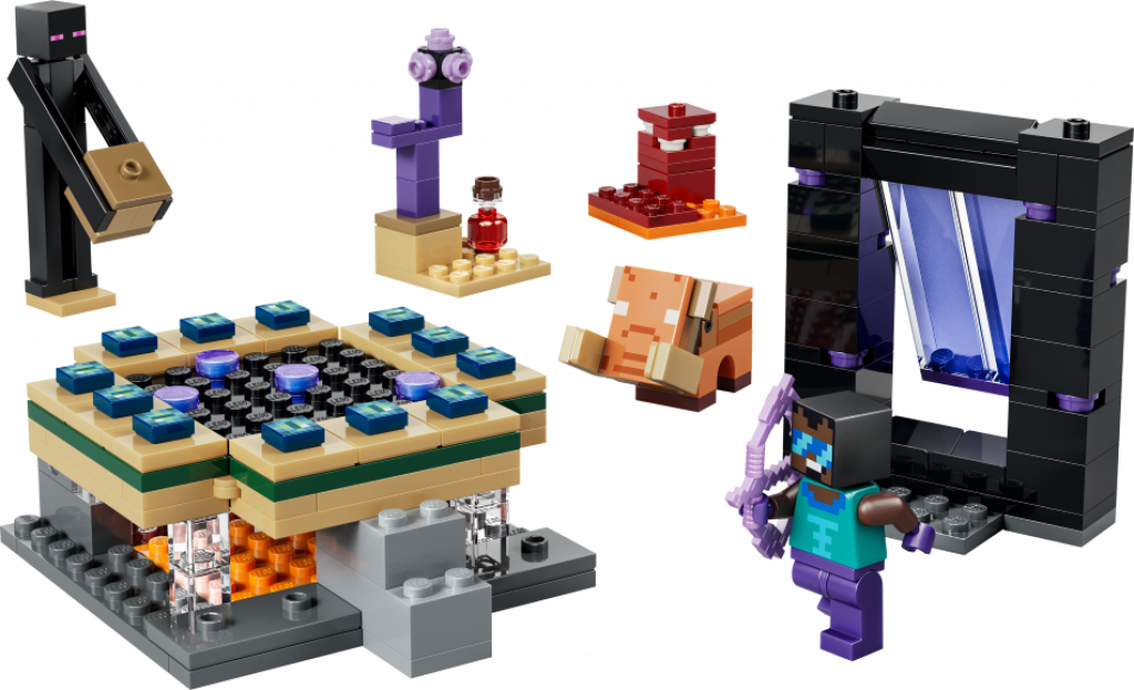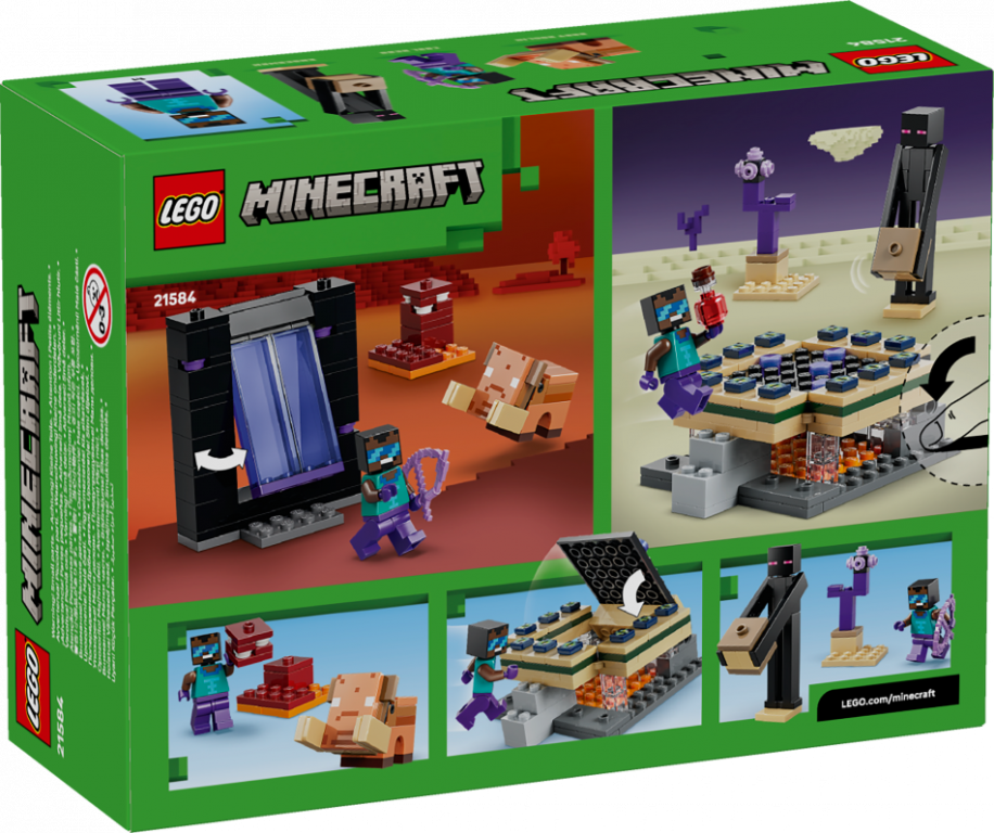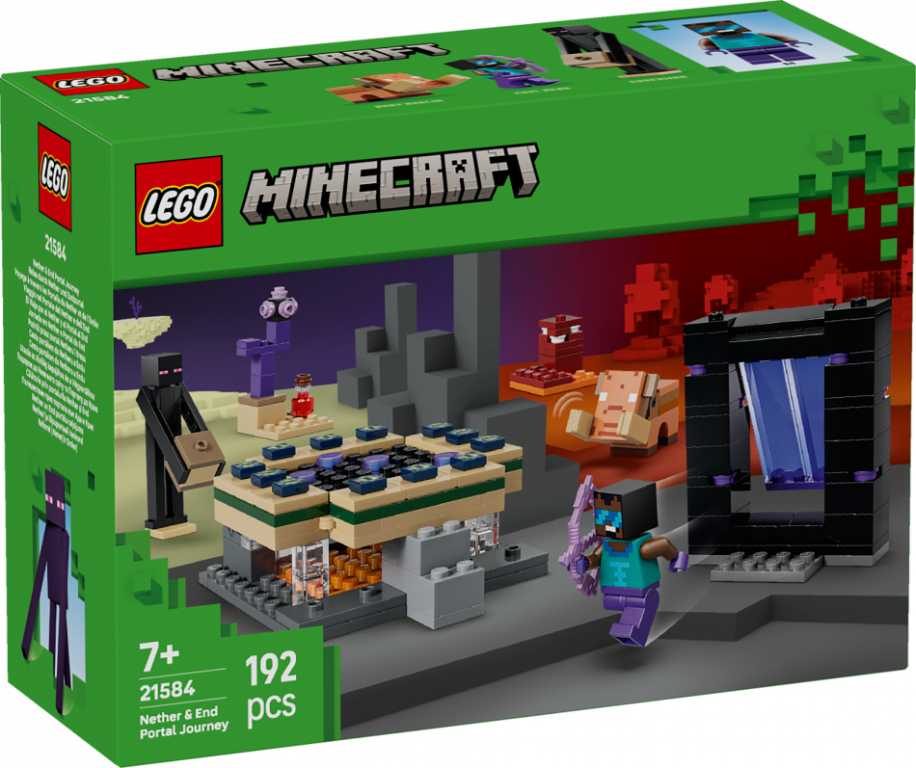 Aizved Minecraft® spēlētājus uz praktisku spēļu piedzīvojumu ar Nether un End portālu ceļojumu (21584) – rotaļlietu zēniem un meitenēm no 7 gadu vecuma. Izej caur portāliem un izpēti modeli no katras biomas, kā arī dodies piedzīvojumos ar Foršā varoņa minifigūru, Enderman un Hoglin mazuļa figūrām Šajā LEGO® Minecraft rotaļlietu komplektā ir End portāls un Nether portāls ar funkcijām, kas ļauj piekļūt nelieliem modelīšiem no katras biomas. Autentiski aksesuāri, tostarp apburts loks un dziedināšanas dzira, iedvesmo radošiem piedzīvojumiem ar pazīstamām ainām un Minecraft tēliem. Šis komplekts ir lieliska dāvana Minecraft spēlētājiem, LEGO būvētājiem un spēļu dekoru faniem. Turklāt lietotnē LEGO Builder bērni var būvēt pārliecinoši – tuvināt un grozīt modeļus trīs dimensijās un sekot līdzi progresam ar viegli izpildāmām digitālajām instrukcijām. Komplektā ir 192 detaļas.