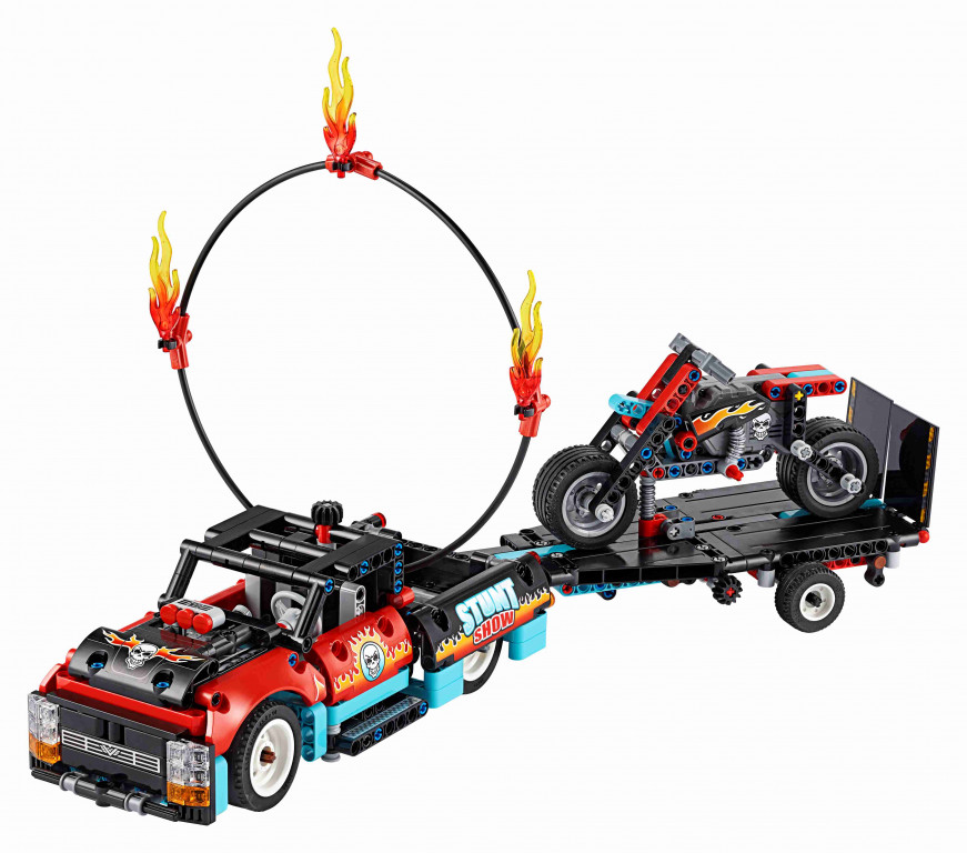 Это самое серьёзное испытание скорости, мастерства и точности. Откати мотоцикл назад, чтобы увидеть, как он едет к рампе. Взгляни, как он выполнит невероятно смелый трюк — пролетит сквозь кольцо огня. Преврати рампу в фургон и прикрепи её к грузовику: мотоцикл готов к транспортировке. Готов к новому заданию? Перестрой модель из набора «Шоу трюков на грузовиках и мотоциклах» LEGO® Technic в крутой Гоночный грузовик.