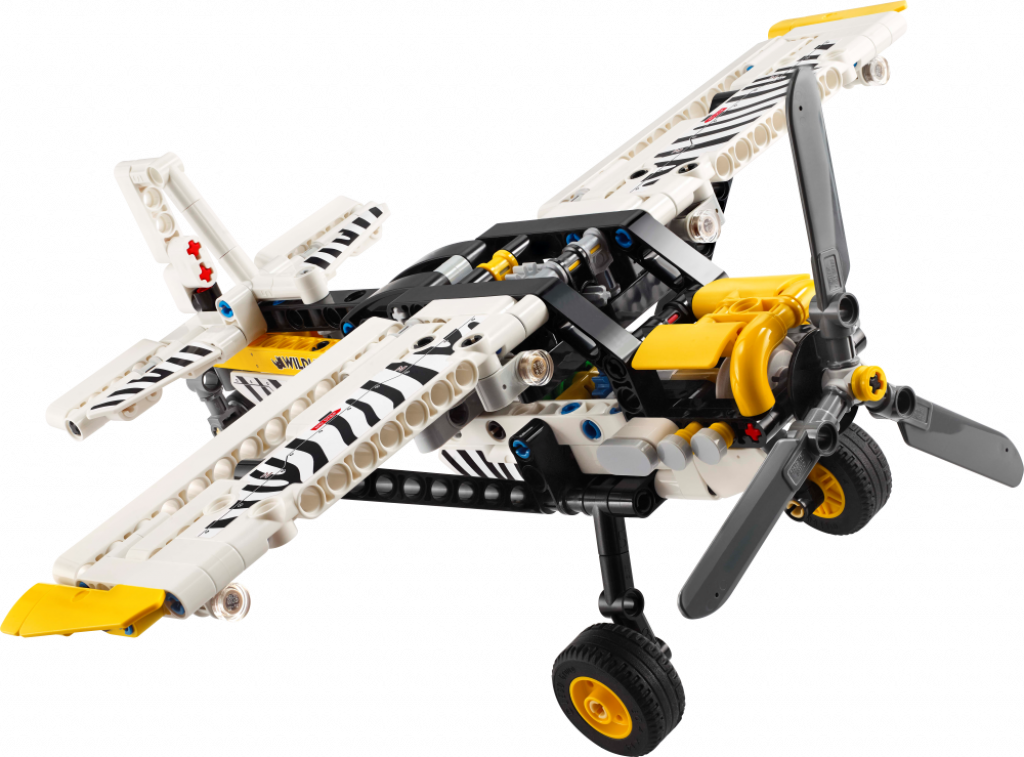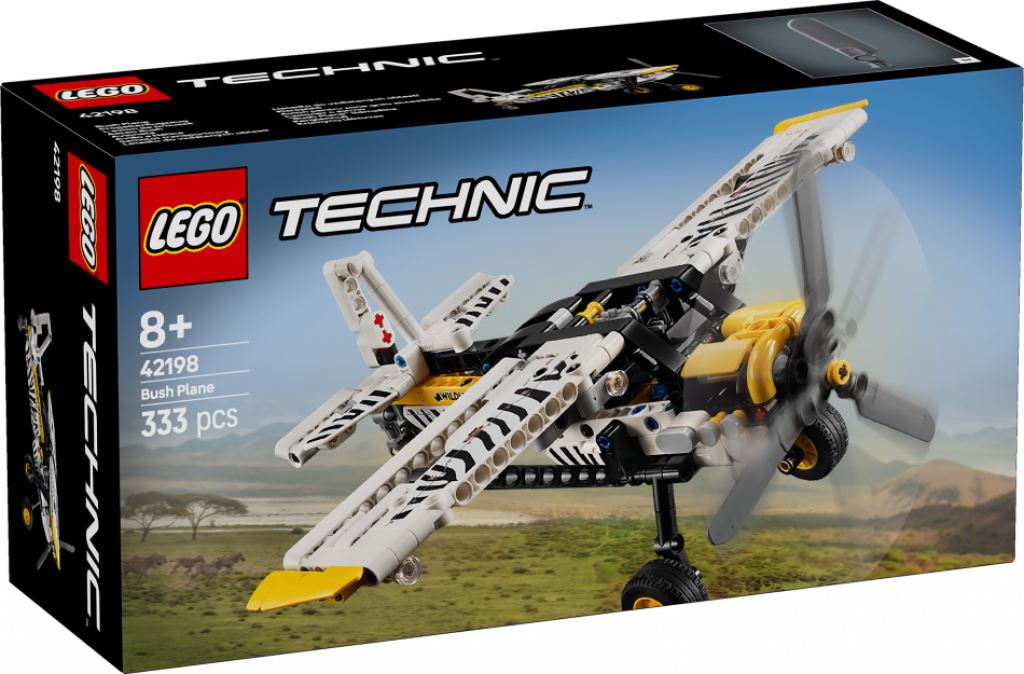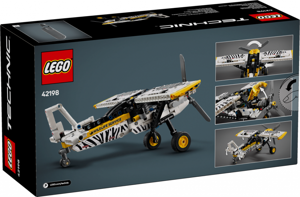 Ļauj iztēlēm lidot ar šo aizraujošo rotaļu lidaparātu bērniem no 8 gadu vecuma. Zēni un meitenes var uzbūvēt LEGO® Technic “Bush Plane” lidmašīnu (42198) un tad izmēģināt tās aizraujošās funkcijas. Piespied sviru, lai aktivizētu rotējošo propelleru. Noregulē eleronus uz sānu spārniem un aizmugurējā spārna. Tad atver motora pārsegu un apbrīno 4 cilindru virzuļdzinēju. Šī bērnu rotaļlieta ietver aizraujošu zebras raksta dizainu, kas simbolizē šāda tipa lidmašīnu lomu savvaļas aizsardzībā.