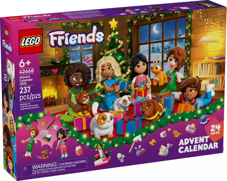 Meitenes un zēni no 6 gadu vecuma var noskaņoties svētku pacilātībai, atverot LEGO® Friends 2025. gada Adventes kalendāra (42668) durtiņas. Tas ietver 5 minilellītes, tostarp Aliju, Otumu, Liannu, Novu un Leo, kā arī 5 LEGO dzīvniekus, tostarp 2 suņus, jūrascūciņu, gekonu un kaķa figūru. Katru dienu atver pa durtiņām, uzbūvējot svētku pidžamu ballītes stāstu. Aiz katrām durtiņām atrodi pa pārsteigumam – mīlīgam modelim Ziemassvētku noskaņās. Atklāj svinīgās aktivitātes, piemēram, rakstīšanu Ziemassvētku vecītim, eglītes rotāšanu, karaoke dziedāšanu, šūpošanos uz koka zirdziņa un karstās šokolādes gatavošanu. Katrai minilellītei ir pa matracim un katram dzīvnieciņam pa aksesuāram, lai bērni varētu izspēlēt dažādus stāstus, saliekot ainu. Citi piederumi ietver dīvānu, lampu, kamīnu, kamanas, 5 dāvanu kastes un mīksto LEGO rotaļlietu – ziemeļbriedi. Šī radošā rotaļlieta ne vien ir dāvana bērniem svētku gaidīšanas laikā, bet arī attīsta mazo būvētāju sociālās prasmes, viņiem pievienojoties draugiem neaizmirstamai pidžamu ballītei.