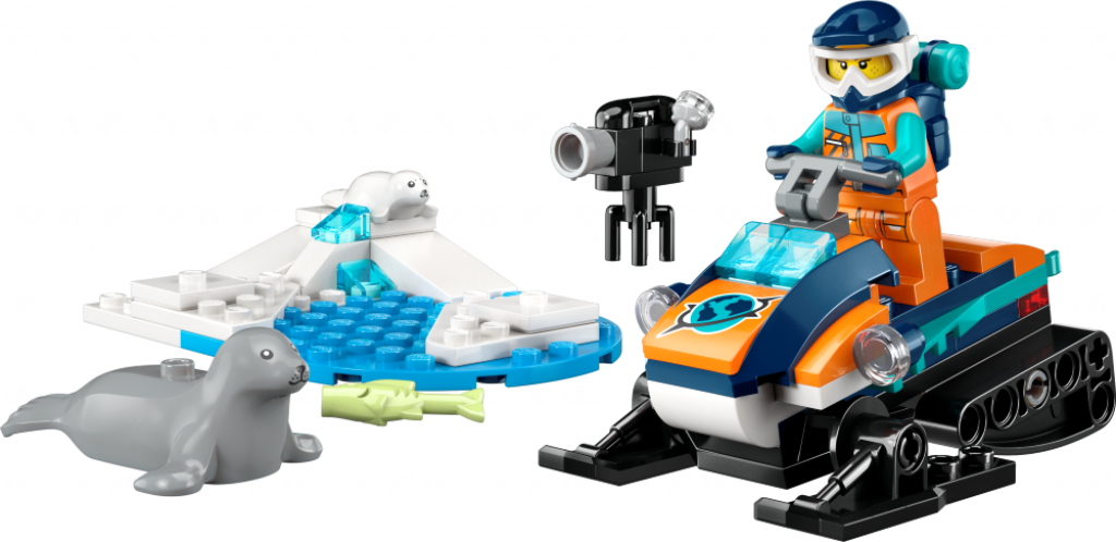 Этот игровой набор «Снегоход исследователя Арктики» LEGO City (60376) станет прекрасным знакомством с творческим миром LEGO City для детей в возрасте от 5 лет. Он включает в себя классный игрушечный снегоход с гусеничными колесами и лыжами, арктическую обстановку и минифигурку исследователя, а также фигурки тюленей и тюленей.