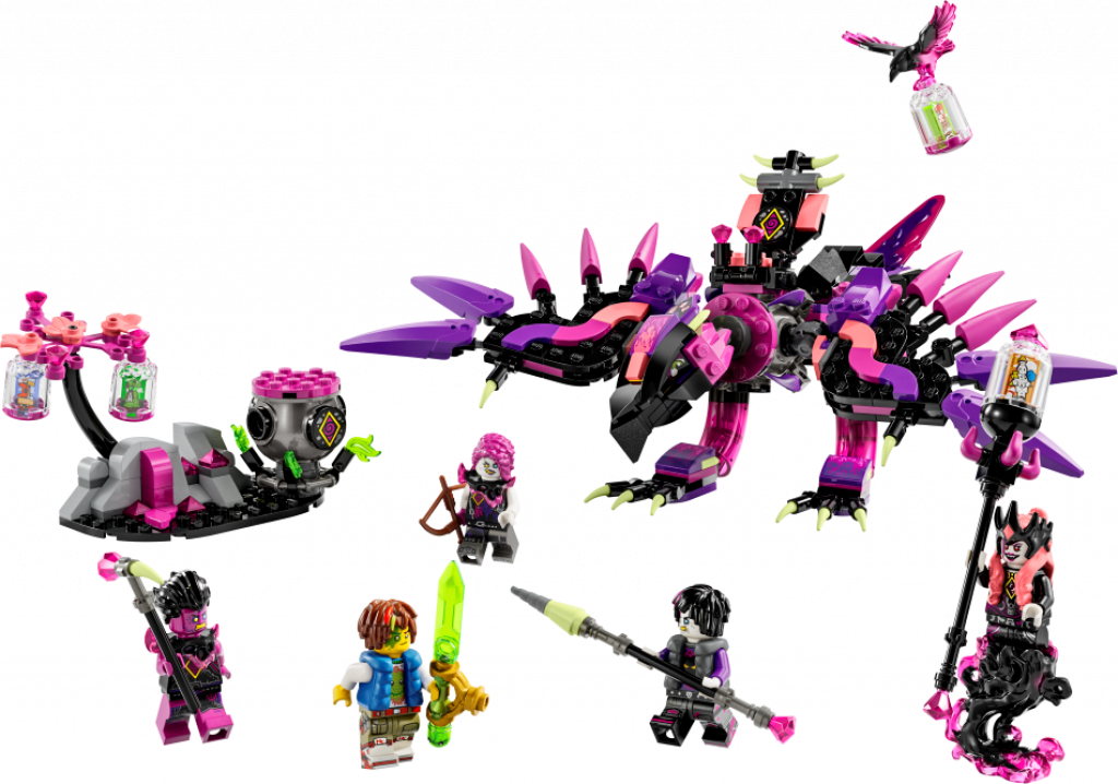 Ļauj burbuļot iztēlēm ar LEGO® DREAMZzz™ Nekad raganas murgu radībām (71483) – maģiskām rotaļlietām bērniem no 9 gadu vecuma. Radīts, balstoties uz aizraujošo TV seriālu, šis pārbūvējamais fantāzijas rotaļu komplekts ļauj zēniem un meitenēm iepazīties ar Nekad raganas ļaunajām radībām. Nekad raganas krauklis ir ielauzies un nozadzis Mateo atmiņu. Viņa ieliek atmiņu savā murgu katlā un gatavo Mateo ļauno līdzinieku MadTeo. Taču ko viņa radīs tālāk? Tas jāizlemj bērniem! Lai mazie sapņotāji ļauj vaļu radošumam un uzbūvē rotaļu kraukli, ko pēc tam var pārbūvēt par rotaļu vilku vai DoomBlob figūru – Z-Blob ļauno līdzinieku. Šī LEGO DREAMZzz komplekta maģiju iedzīvina 5 minifigūras – Mateo, MadTeo, Doey, Dogan un Nekad ragana – kuri iedvesmo bezgalīgi plašām rotaļu iespējām. Komplekts ietver arī būvēšanas instrukcijas stāstu formā, kas rosina bērnus nodoties piedzīvojumu pasaulei un īstenot aizraujošākos sapņus.