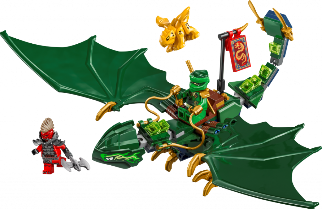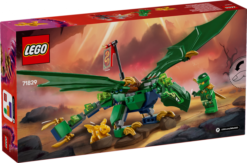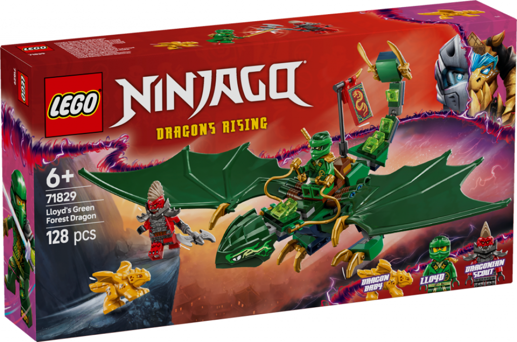 Zēni un meitenes no 6 gadu vecuma var laisties debesīs, lai atveidotu gaisā notiekošas ainas no TV seriāla NINJAGO® Dragons Rising 3. sezonas ar rotaļu būvēšanas komplektu "Lloyd zaļais meža pūķis" (71829). Tajā ir iespaidīgs rotaļu pūķis ar kustīgu asti, kaklu, kājām, lieliem spārniem un rokām, kā arī segli, ar ko minifigūrai jāt tā mugurā.