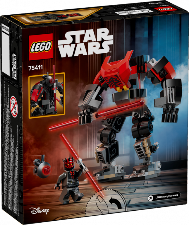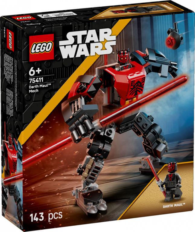 Ļauj bērniem izpētīt Spēka tumšo pusi ar LEGO® Star Wars™ visumu, kamēr viņi rotaļājas ar Darth Maul robota rotaļu modeli zēniem, meitenēm un faniem no 6 gadu vecuma (75411). Šis ātri uzbūvējamais, kustīgais rotaļu robots ir radīts, lai izskatītospēc Darth Maul, kā viņš izskatījās Zvaigžņu kari: Klonu kari cīņās, lai pārņemtu Mandalore. Tam ir atverama kabīne Darth Maul LEGO Star Wars minifigūrai, klipsis sarkanajam gaismas zobenam ar dubulto asmeni, kā arī satverošas rokas, kurās turēt lielu,sarkanu gaismas zobenu robota izmērā. LEGO Star Wars Probe Droid, kas piestiprināms robotam, papildina radošās rotaļu iespējas.