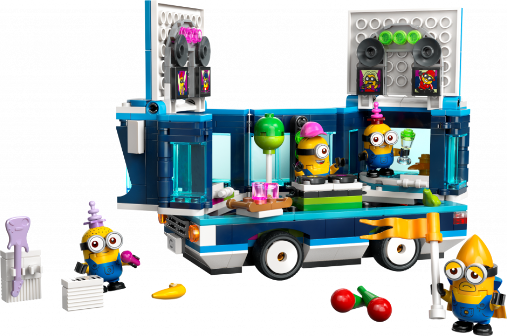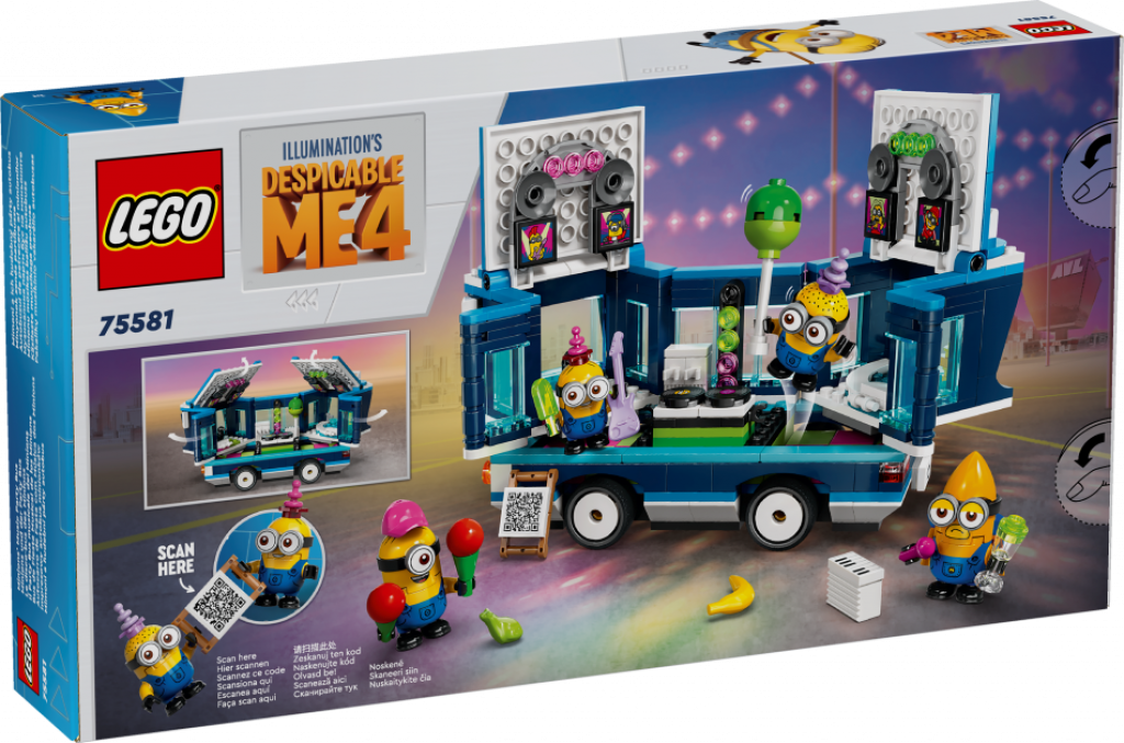 Uzdāvini Minionu rotaļlietu faniem un bērniem, kam patīk transportlīdzekļi, 'divi vienā' jautrību ar LEGO® Despicable Me 4 Minionu mūzikas ballīšu autobusu (75581). Šis radošais komplekts bērniem ietver stumjamu rotaļu autobusu, kuru atverot, iekšpusē ieraudzīsi vareni aizraujošu Minionu ballīšu komplektu. Tā ir daudzveidīga rotaļlieta bērniem no 7 gadu vecuma, un filmas Despicable Me 4 faniem.