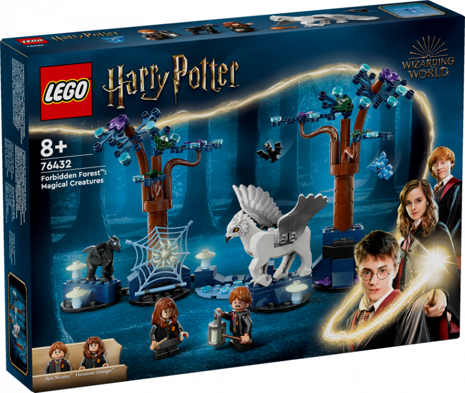 Uzbūvē LEGO® klucīšu Aizliegto mežu, kas ir maģisku būtņu pilns, ar šo LEGO Harry Potter™ fantāzijas rotaļu komplektu bērniem (76432). Tajā ir koki ar lapu elementiem naksnīgās krāsās, kā arī tumsā spīdošs rotaļu zirneklis un 4 tumsā spīdošas sēnes, ar ko uzburt maģisku atmosfēru. Komplektā ir 2 LEGO minifigūras – Rons Vīzlijs un Hermione Grendžera – kā arī Švītknābja rotaļu figūra, testrāla mazuļa un Lankašīras laumiņas rotaļu figūras lomu rotaļām. Bērni var arī mainīt vietām šī regulējamā rotaļu komplekta moduļus un radīt dažādas ainas.
