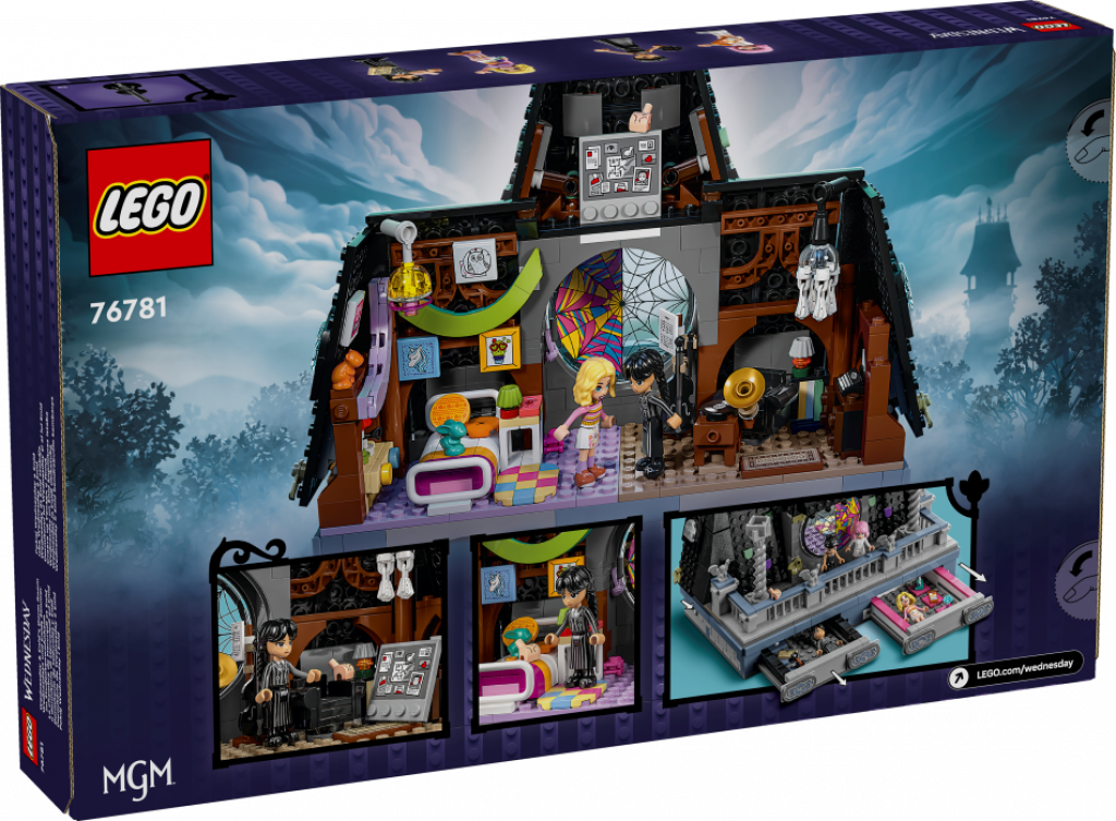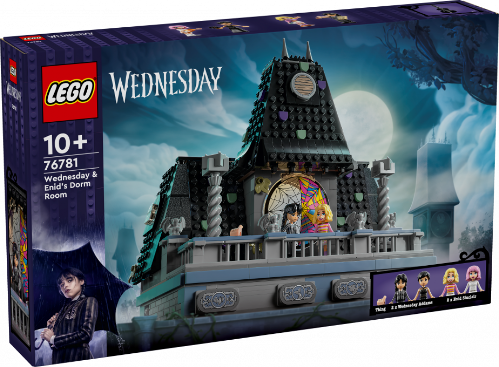 Laipni lūdzam atpakaļ Nevermore akadēmijā ar šo Wednesday un Enid kopmītnes istabas (76781) mistērijas un piedzīvojumu rotaļu komplektu bērniem un faniem no 10 gadu vecuma. Detalizētais Wednesday Addams dāvanu komplekts ietver 4 kolekcionējamas Wednesday un Enid minilellītes figūras, tēlu Thing un kopmītnes istabas modeli. Telpā ir čells, rakstāmmašīna, noslēpumu dēlis, balkons ar gargulām, atverams logs, pamatne ar pogām, ar ko atvērt slēptās atvilktnes, un citas lietas. Atvilktnēs vari glabāt 2 minilellītes un tādus piederumus kā Enid telefonu.