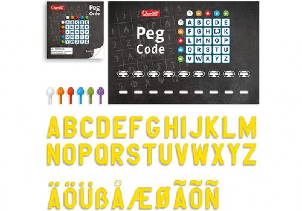 Используйте колышки и буквы, чтобы писать и декодировать секретные сообщения с новым PegCode. Придумайте секретное слово и напишите его в коде, используя специальный алфавит, составленный из цветных колышков. Вы можете бросить вызов своим друзьям, чтобы увидеть, кто расшифровывает код первым. В набор входят карточки с разными алфавитами, поэтому вы можете весело создавать коды на разных языках. Игра на английском языке.